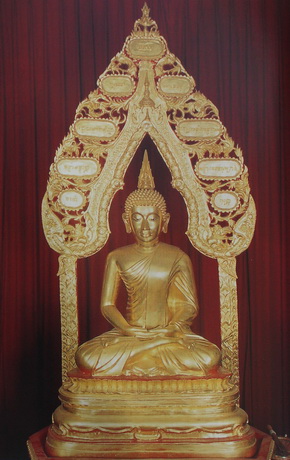 ในปลายรัชสมัยพระบาทสมเด็จพระจอมเกล้าเจ้าอยู่หัว ทรงมีพระราชดำริว่า พระสงฆ์คณะธรรมยุติกนิกายที่พระองค์ทรงสถาปนานั้น แพร่หลายไพบูลย์มากขึ้น มีผู้มีทรัพย์และศรัทธาสร้างพระอารามถวายเป็นการเฉพาะแด่พระสงฆ์ฝ่ายธรรมยุติหลายพระอาราม จึงควรมีสิ่งอันสำคัญเพื่อเป็นที่ระลึกสืบไป ดังนั้น ในปีมะโรง พ.ศ. 2411 โปรดเกล้าฯ ให้ช่างหล่อพระพุทธรูปด้วยทองเหลืองกะไหล่ทอง นั่งขัดสมาธิเพชร พิมพ์เดียวกันกับพระพุทธรูปทองคำซึ่งสวมพระนิรันตราย แต่มีเรือนแก้วอยู่เบื้องหลังเป็นพุ่มพระมหาโพธิ์ มีอักษรขอมจำหลักลงไว้ในวงกลีบบัว เบื้องหน้า 9 เบื้องหลัง 9 แสดงพระพุทธคุณตั้งแต่ "อรหังสัมมาสัมพุทโธ" จนถึง "ภควา" ยอดเรือนแก้วมีรูปพระมหามงกุฏตั้งติดอยู่กับฐานชั้นล่าง รองฐานพระซึ่งเป็นที่สำหรับรับน้ำสรงพระ มีท่อเป็นรูปศีรษะโคแสดงเป็นที่หมายพระโคตร ซึ่งเป็นโคตมะ