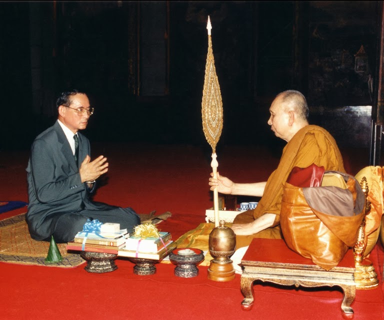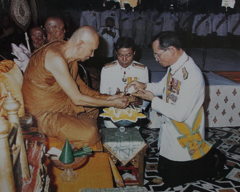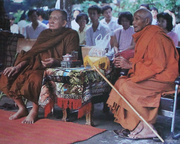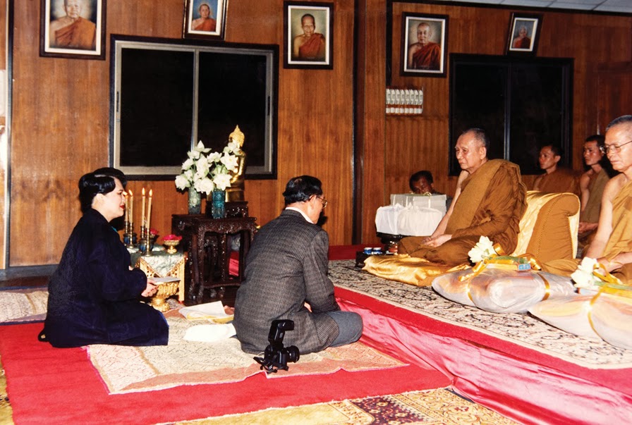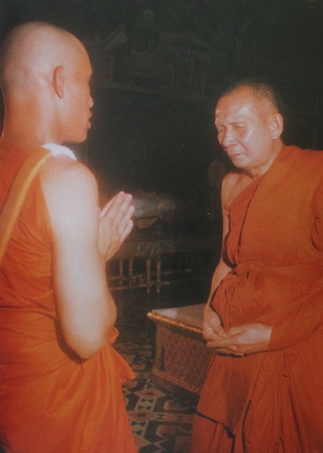 | หลวงพ่อพุธ ฐานิโย ถวายเครื่องสักการะแด่สมเด็จพระญาณสังวรฯ เมื่อคราวเสด็จเยี่ยมวัดป่าสาลวัน นครราชสีมา |