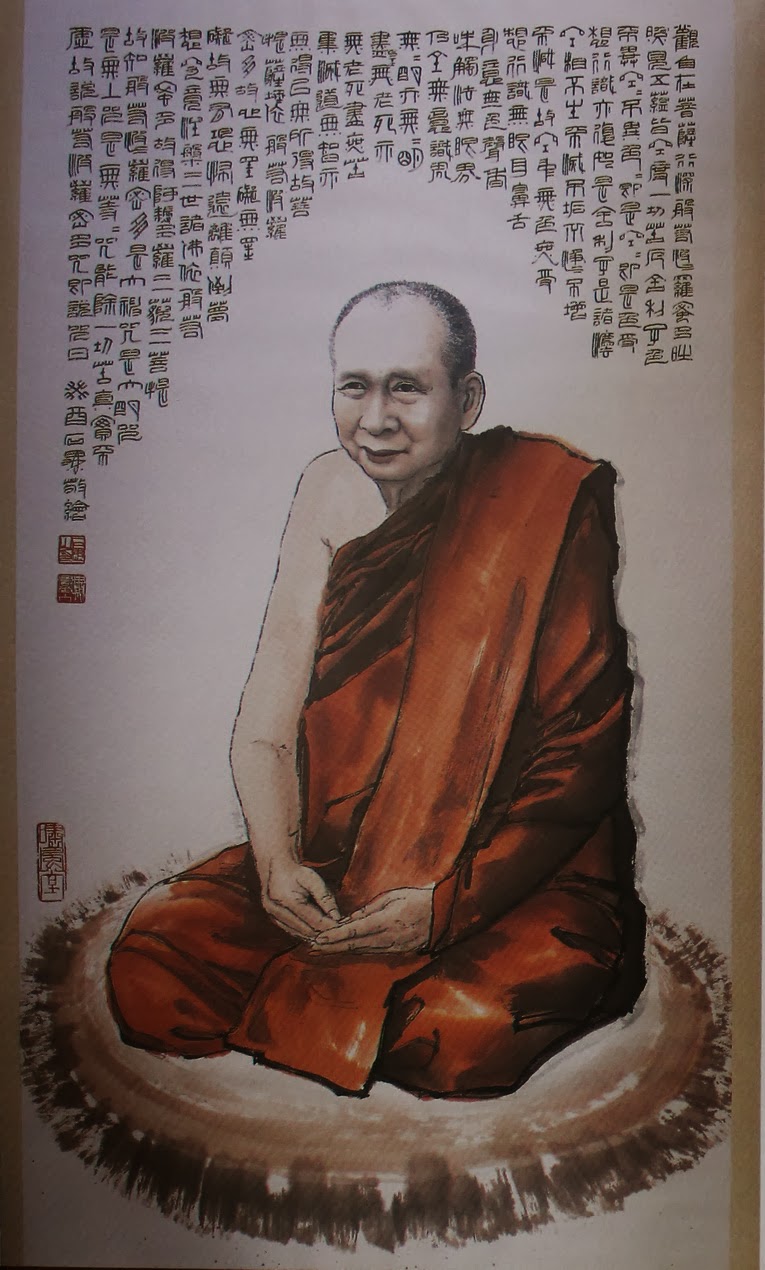 | พระรูปเมื่อครั้งเป็นสามเณร เทศน์ครั้งแรกในอุโบสถวัดเทวสังฆาราม เมื่อ พ.ศ. 2469 (ผู้วาดภาพ - อาจารย์ธีระพันธุ์ ลอไพบูลย์) |