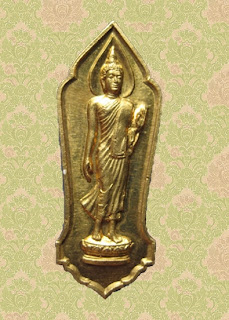 5. พระพุทธรูปบูชา ปางพุทธลีลา ลักษณะเดียวกับพระประธานพุทธมณฑล เนื้อทองคำ ขนาดความสูง 9 เซนติเมตร จำนวน 4 องค์ น้ำหนักทองคำรวม 55 บาท
