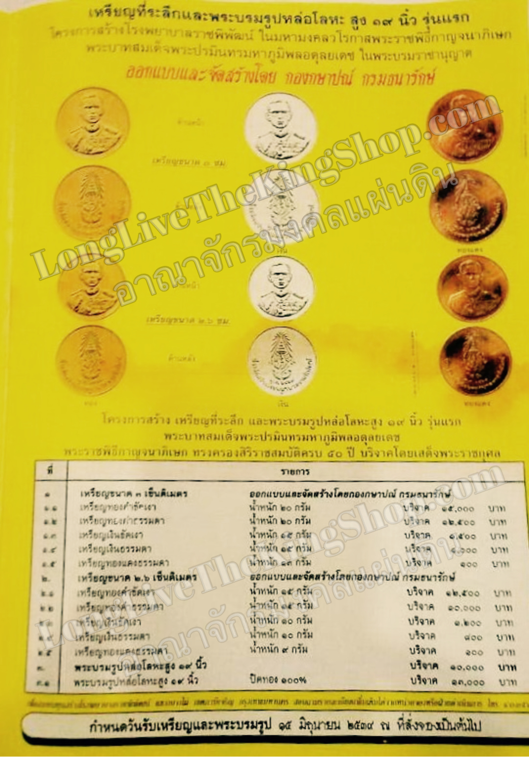 #พระบรมรูปหล่อในหลวงรัชการที่ 9 โดยพระบรมราชานุญาต ที่ระลึกโครงการจัดสร้างโรงพยาบาลราชพิพัฒน์ ในมหามงคลวโรกาสพระราชพิธีกาญจนาภิเษก ทรงครองสิริราชสมบัติครบ 50 ปี พ.ศ.2539 (พิธีใหญ่ปลุกเสกวัดพระแก้ว)