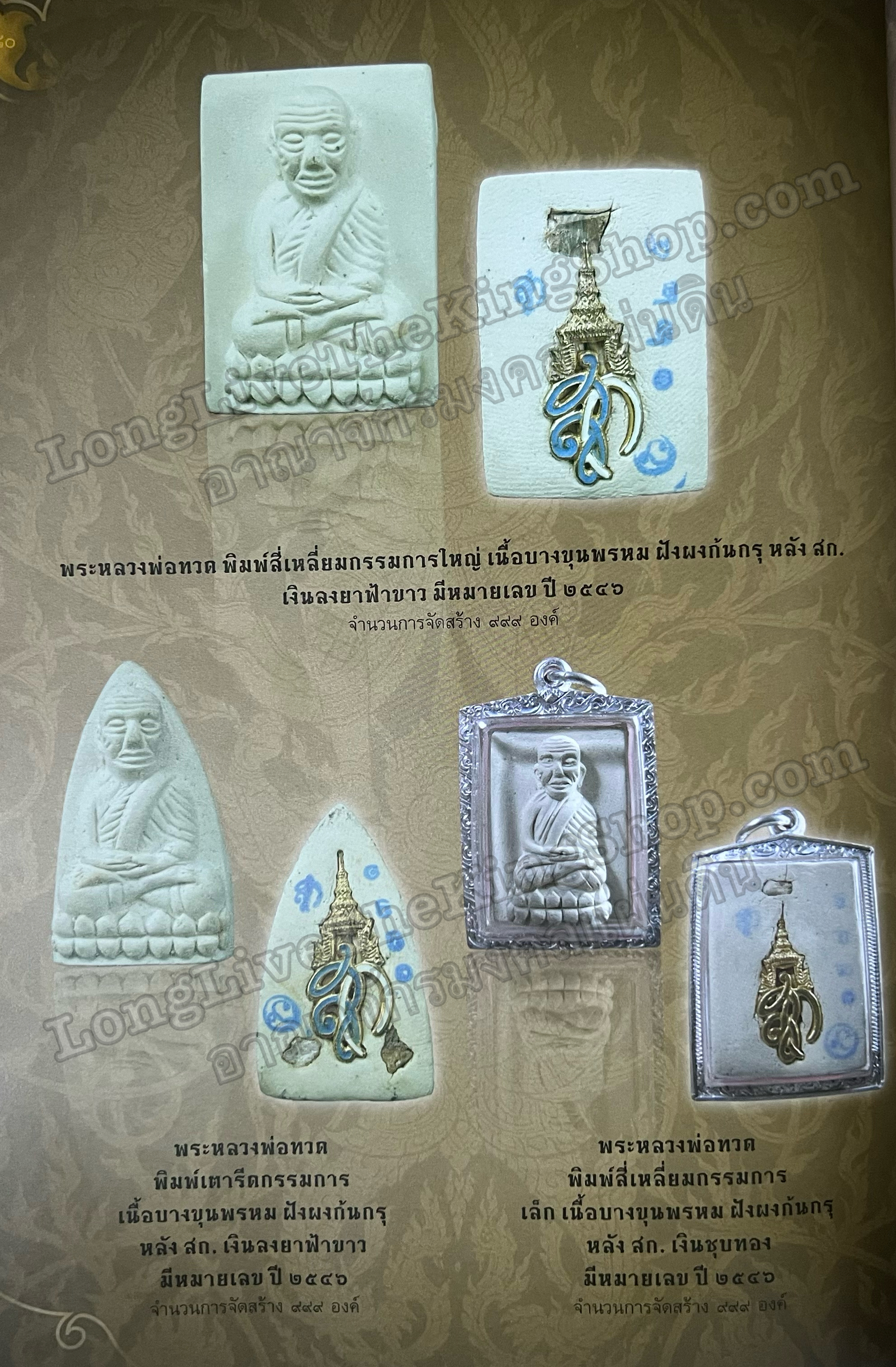 พิมพ์สี่เหลี่ยมกรรมการใหญ่หลังพระนามาภิไธย สก. เงินลงยาฟ้าขาว ปี 2546กรรมการสามโค๊ต(มีหมายเลข)จำนวนจัดสร้าง 999 องค์ พบเจอและหายากในปัจจุบัน