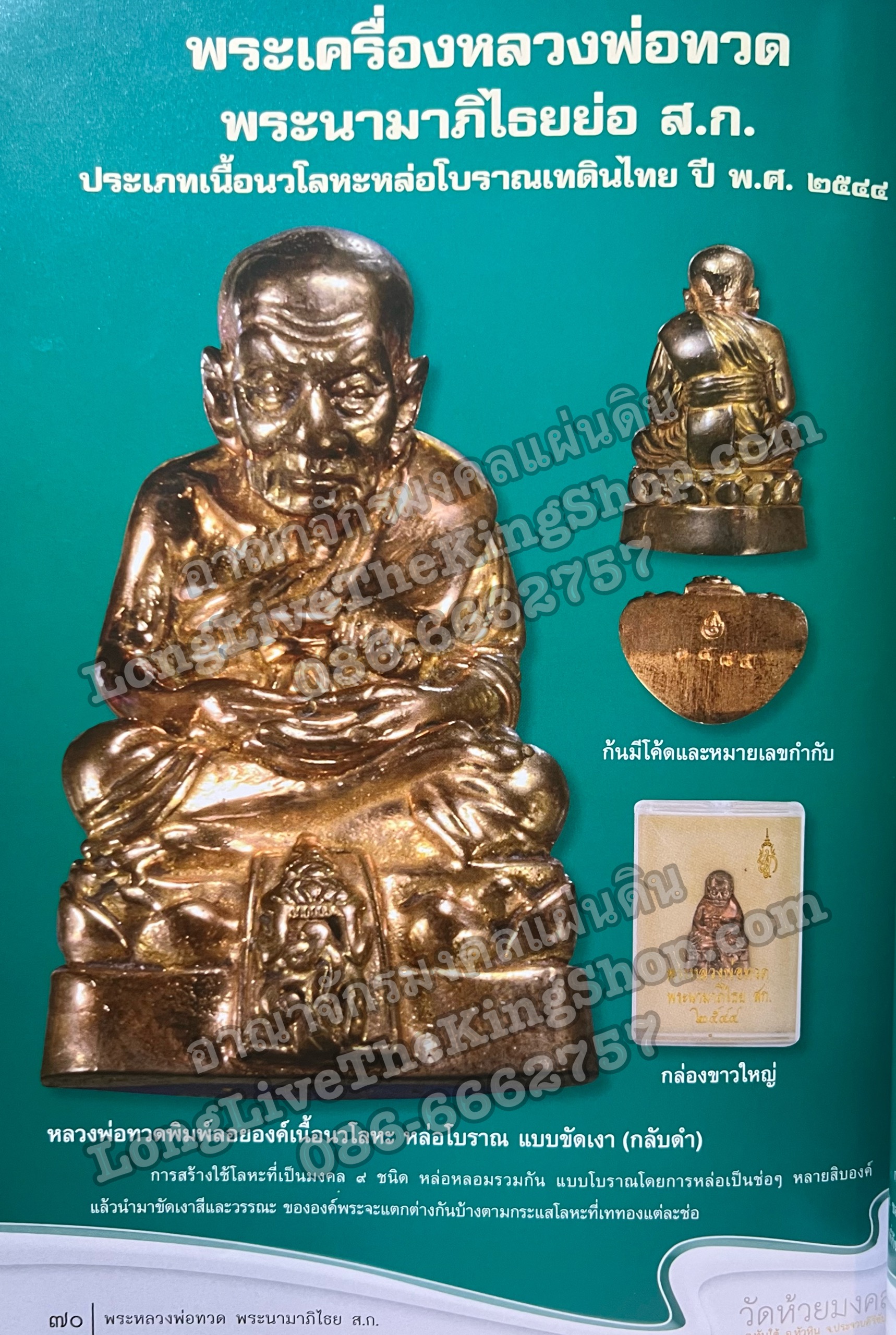 +พระหลวงพ่อทวด พระนามาภิไธย สก. รูปหล่อลอยองค์ เนื้อนวโลหะ วัดห้วยมงคล ปี 2544 สร้างจากสุดยอดชนวนมวลสาร โดยใช้ทรงพิมพ์หลวงปู่ทวดรูปหล่อลอยองค์บัวรอบที่เป็นที่นิยม พระทำออกมาได้สวยงามมาก พระพิมพ์นี้ยังมีคนตามเก็บกันอยู่เรื่อยๆ ขณะนี้เริ่มหาองค์ที่สวยสวยแบบนี้ยากแล้วครับ