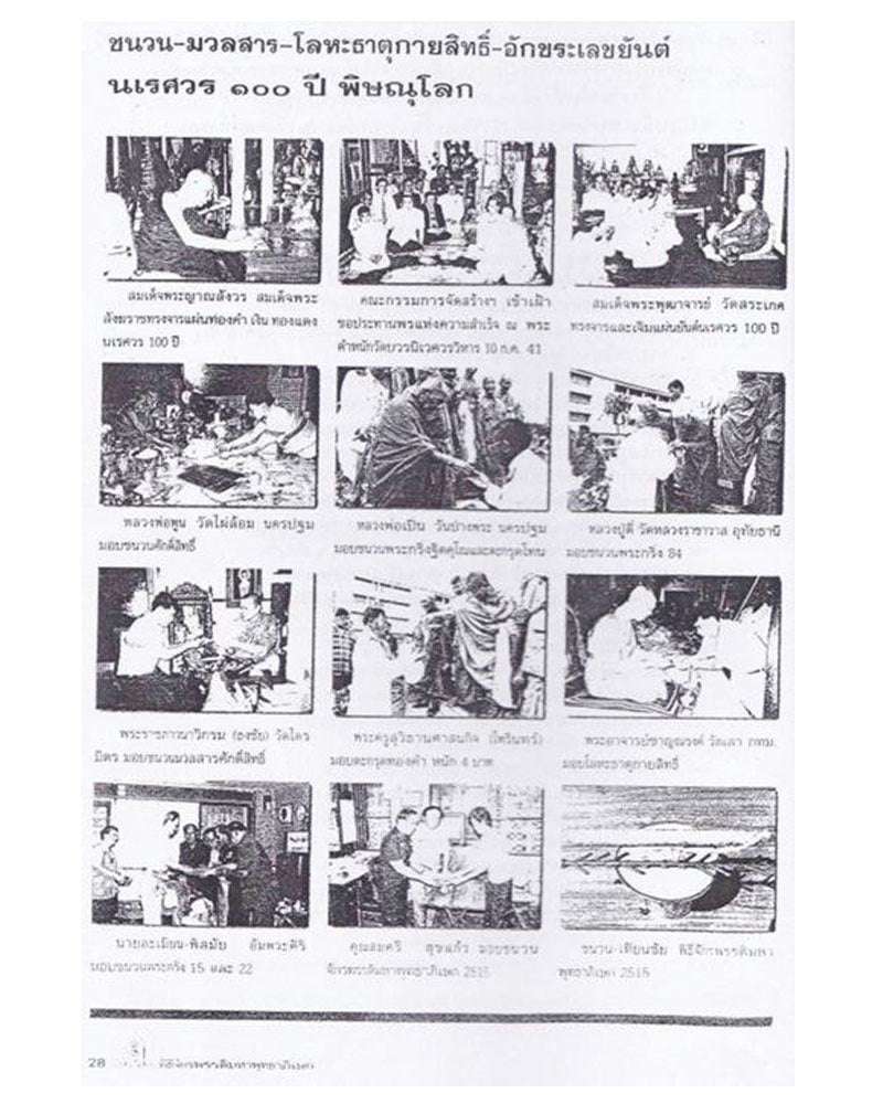 2. พิธีพุทธาภิเษก–ชนวนมวลสาร–แผ่นยันต์–เททองวัตถุมงคลวันที่ 3 พฤศจิกายน 2541 (วันเพ็ญเดือน 12) ครั้งแรกของเมืองพิษณุโลก สมเด็จพระพุฒาจารย์ วัดสระเกศ เป็นผู้แทนองค์สมเด็จพระญาณสังวร พระสังฆราชฯ เป็นองค์ประธานในพิธี มีหลวงพ่ออุตตมะ หลวงพ่อเปิ่น หลวงปู่คำพันธ์ พร้อมเกจิอาจารย์ชื่อดัง 21 รูป นั่งปรกตลอดพิธี