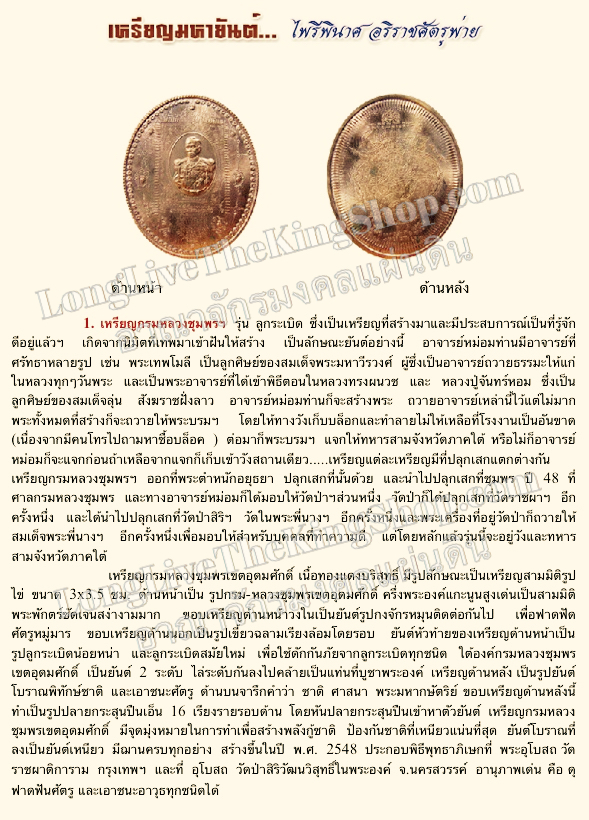 #เหรียญมหายันต์ ไพรีพินาศ อริราชศัตรูพ่าย พิมพ์นวมหาราช(ด้านหน้า)/พระสยามเทวาธิราช(ด้านหลัง) เนื้อทองแดง(พิมพ์หายาก)